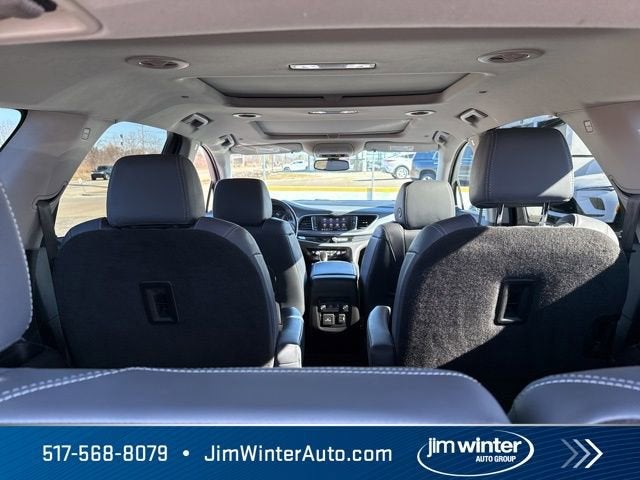 Inside, the Enclave Essence pampers you with perforated leather-appointed seating, heated front seats, and power-adjustable lumbar support. The spacious 7-passenger cabin offers ample room for your family and their belongings, with a split-folding third-row seat for added versatility.